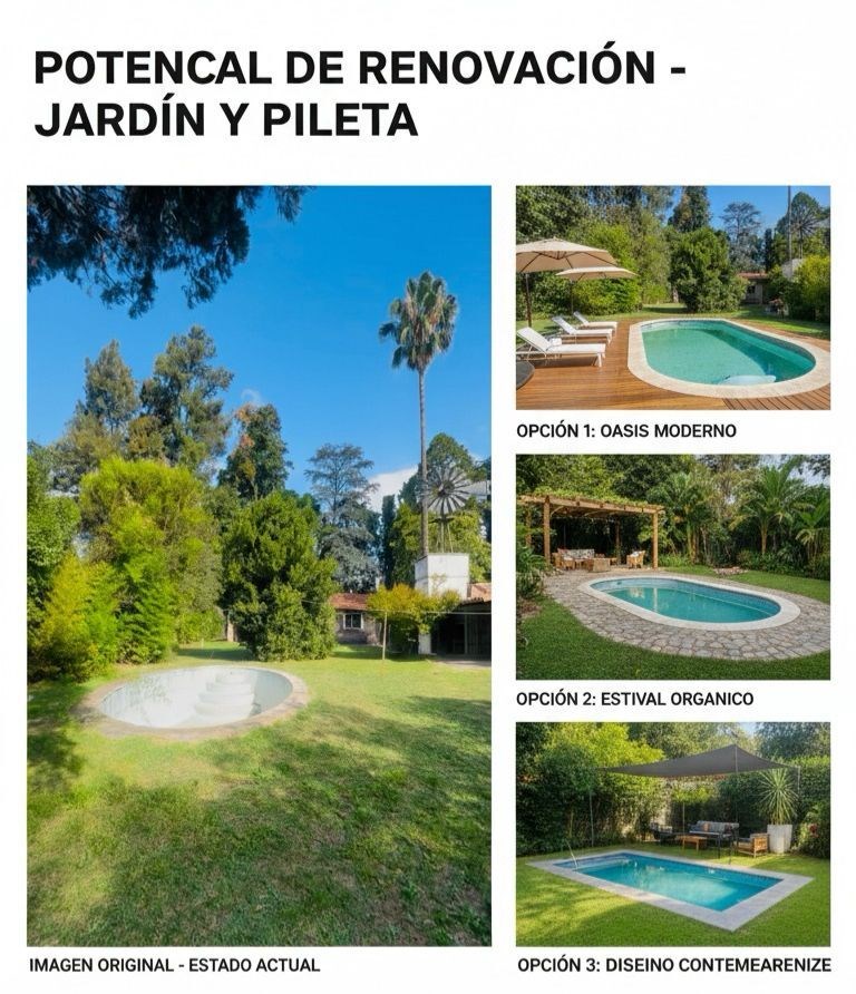 Casa Quinta en Venta – Tortuguitas | Apta Crédito Amplia propiedad a la venta en Tortuguitas, una casa quinta pensada para disfrutar del verde, la tranquilidad y los espacios abiertos, ideal tanto para vivienda permanente como para casa de fin de semana. La propiedad se encuentra implantada sobre un gran lote arbolado que brinda privacidad y múltiples posibilidades de ampliación o desarrollo. La vivienda se desarrolla totalmente en una planta, con una distribución funcional que separa claramente el área privada del sector social. Al ingresar a la propiedad encontramos un porche de acceso, que actúa como distribuidor hacia las dos alas de la casa. Hacia el lado izquierdo se ubica el sector privado, compuesto por dos cómodos dormitorios y un baño completo, conformando un espacio tranquilo y bien definido para el descanso. Hacia el ala opuesta se desarrolla el sector familiar y social, con un amplio living comedor en “L” con hogar a leña, un ambiente cálido, luminoso y muy confortable, ideal para reuniones familiares o encuentros con amigos. Este espacio se conecta con una cocina amplia y funcional, equipada con buenos espacios de guardado, lo que la hace práctica para el uso diario. La propiedad cuenta con servicios de electricidad, gas natural y agua, lo que permite su utilización permanente durante todo el año. El exterior es uno de los grandes atractivos de la casa. El terreno se encuentra excelentemente parquizado, ofreciendo amplios espacios verdes para disfrutar del aire libre. En el fondo del lote se desarrolla un quincho independiente con parrilla, mesada y baño propio, perfecto para reuniones y eventos. También cuenta con una pileta ovalada, ideal para los días de verano, y un galpón o depósito al fondo con bomba de agua, que aporta espacio adicional de guardado y mantenimiento. Todo esto se integra en un gran parque arbolado, que brinda una sensación de amplitud, privacidad y contacto con la naturaleza difícil de encontrar. Una excelente oportunidad para quienes buscan una casa quinta con gran parque, espacios cómodos y un entorno natural, ideal para disfrutar en familia durante todo el año. ?? Superficies • Terreno: 1.338,30 m² • Superficie cubierta aprobada: 101,59 m² • Piscina aprobada: 25,16 m² • Superficie cubierta a construir: 29,50 m² • Superficie total: 131,09 m² • Superficie libre: 1.207,21 m² La propiedad ofrece excelentes espacios para disfrutar al aire libre: • Garage / galería cubierta • Porche de ingreso • Quincho independiente con parrilla, mesada y toilette • Galpón o depósito al fondo con bomba de agua • Piscina • Gran parque con múltiples posibilidades de ampliación o desarrollo ? Propiedad Apta Crédito